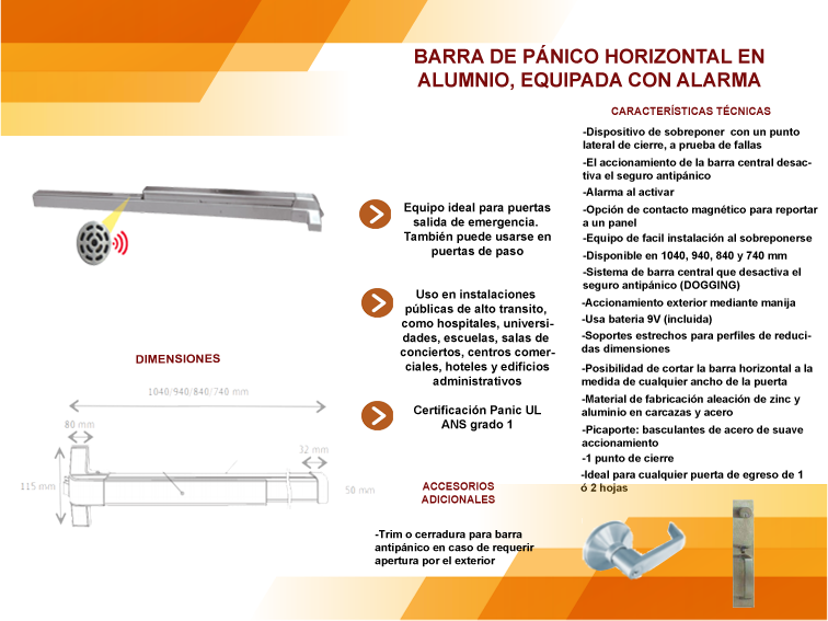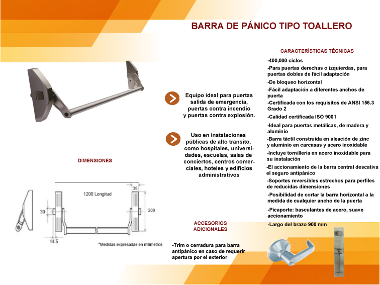BARRAS DE PÁNICO : Las barras de pánico facilitan y garantizan la apertura