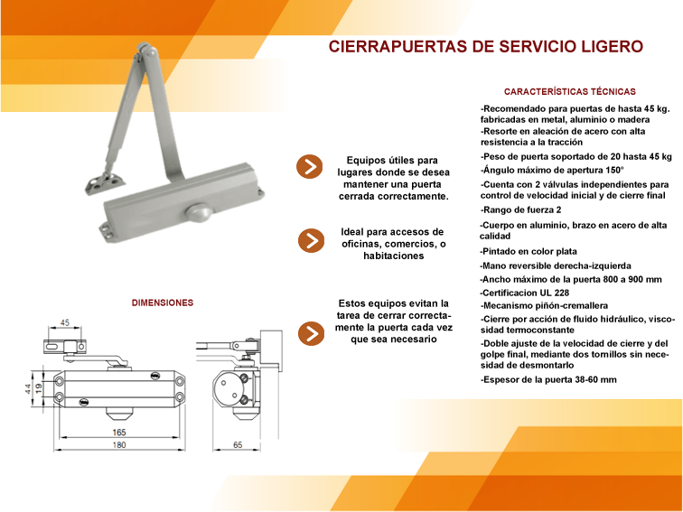 Cierrapuertas de servicio ligero puertas de aluminio y madera