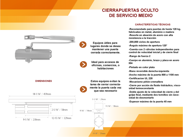 Cierrapuertas de servicio medio puertas metálicas de hasta 120 kg.
