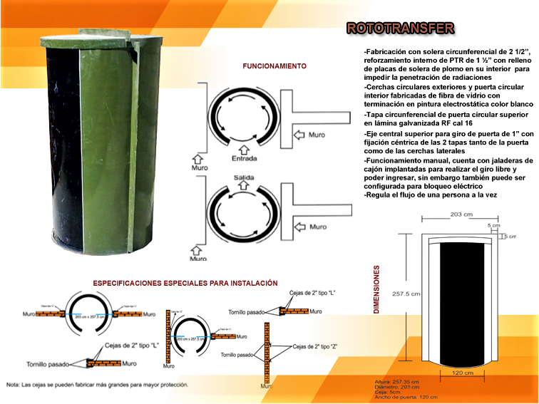 PARA VALORES Y OBJETOS: Diseñado con sistema esclusa mecánico giratorio, funciona como medio para el acceso de valores a un cuarto sin tener contacto físico entre las personas. Puede ser fabricado con lamina de acero inoxidable o lamina galvanizada de acuerdo a requerimientos del cliente.