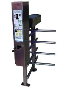 PARA CONTROL DE COBRO : Torniquetes tipo trípode para control de cobro ideales para espacio reducido, cuentan con un mecanismo uno a uno, generalmente bidireccional, sin embargo también contamos con diseños dobles que pueden actuar como una entrada y una salida siendo estos unidireccionales. Pueden adaptarse a cualquiera de nuestros tragamonedas (monedero inteligente, con devolución de cambio, multimoneda o unimoneda) según necesidades del cliente.