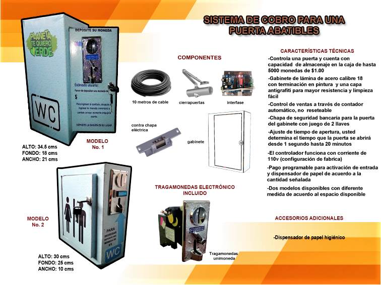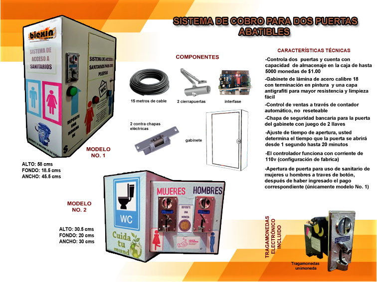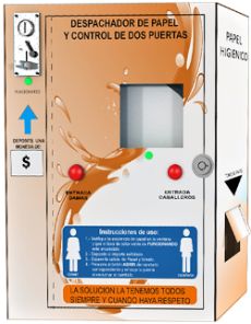 Sistema de cobro para dos puertas abatibles con despachador de papel