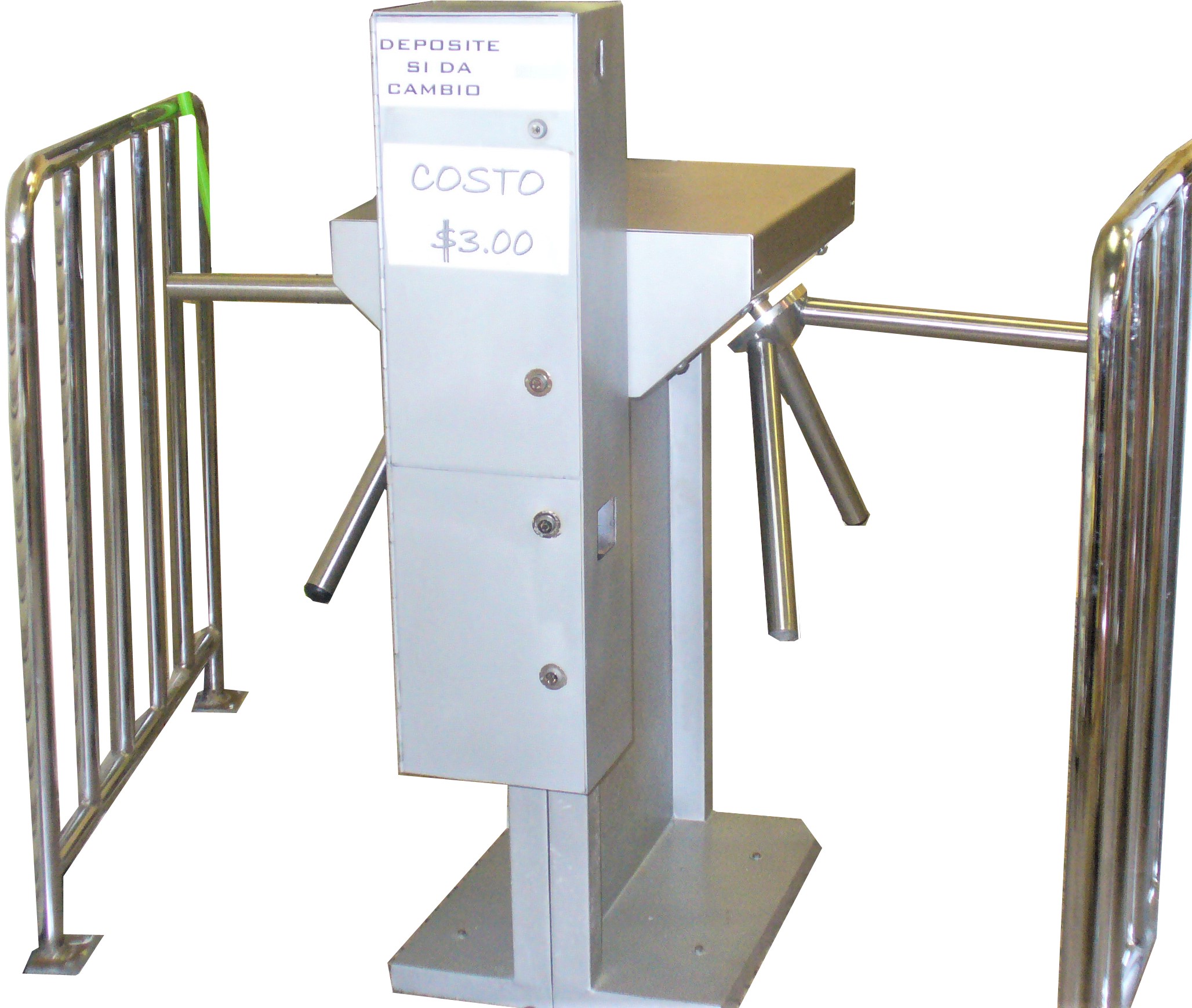 PARA CONTROL DE COBRO : Torniquetes tipo trípode para control de cobro ideales para espacio reducido, cuentan con un mecanismo uno a uno, generalmente bidireccional, sin embargo también contamos con diseños dobles que pueden actuar como una entrada y una salida siendo estos unidireccionales. Pueden adaptarse a cualquiera de nuestros tragamonedas (monedero inteligente, con devolución de cambio, multimoneda o unimoneda) según necesidades del cliente.