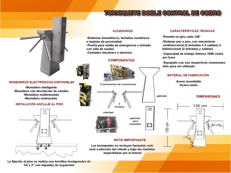 Descarga nuestras fichas técnicas de torniquetes para control de cobro: