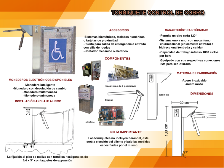 • Ideal para cualquier lugar donde se requiera algún tipo de cobro al ingreso, especialmente baños públicos
